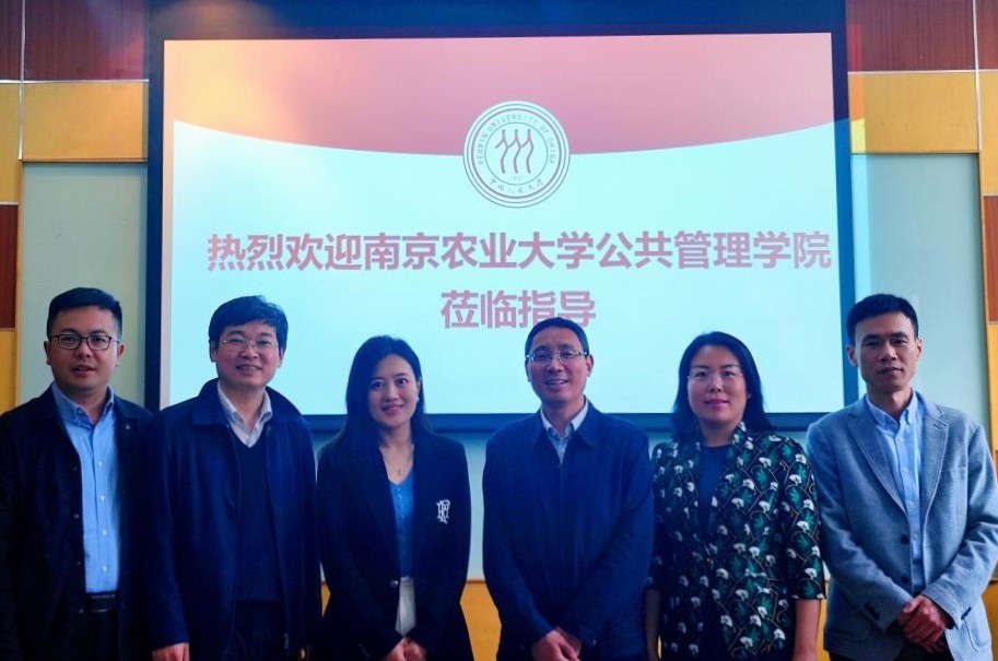 2023年4月20日下午,国产a片 与南京农业大学公共管理国产a片 在国产a片 会议室开展了学科建设座谈会。南京农业大学公共管理国产a片 副院长郭贯成,人力资源与社会保障系教授冯彩玲、人力资源与社会保障系主任陆万军和国产a片 副院长、纪委书记郭瑜,人力资源管理系教授徐世勇,社会保障系副教授、学会与期刊事务项目中心主任刘凯等参加座谈交流。