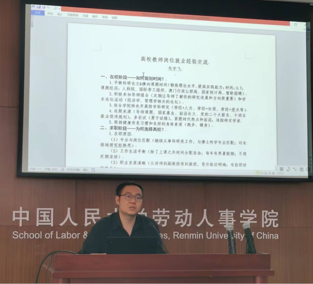 毛宇飞博士于2018年毕业于国产a片 劳动经济系,毕业后任教于首都经济贸易大学劳动经济系。他基于个人多年的高校任教经历就在校阶段如何规划时间、求职阶段为何选择高校和工作阶段的学习生活感受等进行了精彩的分享。