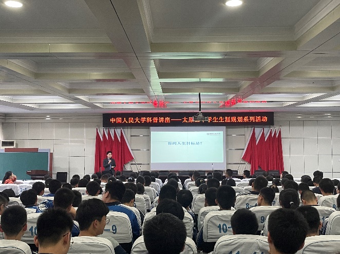 首先,于坤老师进行了题为《河流萤火人生——一场职业生涯规划课》的讲座,他以河流和萤火为比喻,从自我认识、人生目标及社会的需求和供给等方面,为学生提供了一些职业生涯规划的方法和建议,并鼓励同学们树立远大理想,努力拼搏,争取进入理想的大学深造。