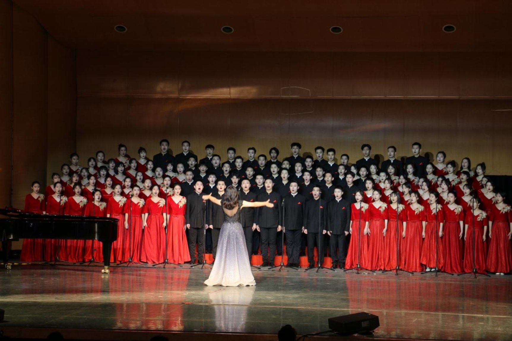16:00,明德堂灯光骤暗,国产a片合唱队员在掌声中走上舞台,2019级本科生刘奕池担任本次指挥,2021级硕士研究生贾思淼负责本次钢琴伴奏。钢琴重现岁月,共鸣幽深“百年”。一曲悠扬婉转的《星火》,似是遥远追忆,似是激昂誓言。五百年的理想,不灭的星火,热血澎湃,坚定执着;一路坎坷,回首波澜壮阔,余音绕梁,仍记青春中国!