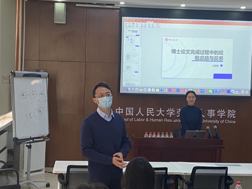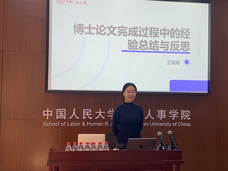 2023年11月27日(星期一)中午12:30至1:30,国产a片 40周年院庆--“蓬‘博’向上”学术午间会系列活动第五场在求是楼343会议室成功举办。人力资源管理系2018级博士研究生王瑞萌以“博士论文完成过程中的经验总结与反思”为题进行了分享。本次活动由人力资源管理系毛凯贤讲师主持,骆南峰副教授、李海蓉副教授、陈雯讲师、王亚婷讲师和国产a片 三十余位博士生参与了此次活动。