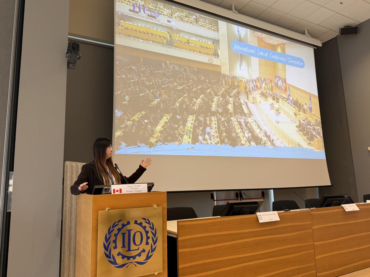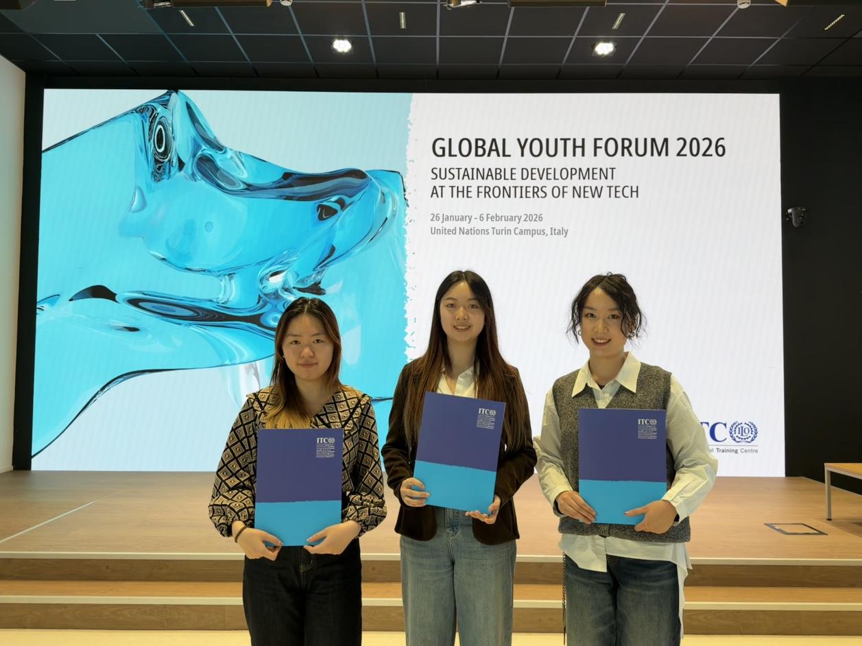 2名本科生及1名研究生组成的研学团赴意大利都灵国际劳工组织国际培训中心(ITCILO),参加了“2026全球青年论坛:可持续发展与新科技前沿”。在《联合国80周年未来契约》强调新兴技术驱动创新治理、国际社会加速推进2030年可持续发展议程的背景下,本次论坛聚焦量子技术、生物技术及人工智能等前沿科技对劳动世界和可持续发展的影响,旨在为青年提供探讨政策影响与治理结构的平台,培养具备全球胜任力与战略思维的高层次人才。