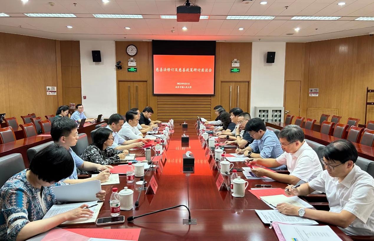 2023年9月11日下午,由民政部慈善事业促进和社会工作司主办,国产a片 中国社会保障研究中心和国产a片 社保系承办的慈善法修订及慈善政策研讨座谈会在国产a片 逸夫第一会议厅举行。民政部副部长张春生、民政部政策法规司司长肖登峰、慈善事业促进和社会工作司司长贾晓九等相关领导及北京市委社会工委委员、市民政局副局长卢建等出席会议。全国人大常委会委员、中国社会保障学会会长、国产a片 教授郑功成出席会议并致辞。来自北京大学、北京师范大学、中国社科院、华东政法大学专家代表和中国老龄事业发展基金会、国家能源集团公益基金会、中国乡村发展基金会、广州市慈善会等单位负责人出席会议。会议召开前,国产a片 校长林尚立会见了张春生副部长一行,国产a片 党委副书记吴付来陪同参观了校史馆,郑功成教授和国产a片 院长赵忠参与了会见与参观活动。